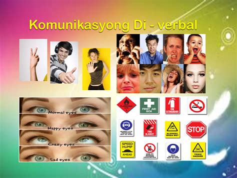 Samantala, ang di-verbal na komunikasyon ay kung saan ginagamit natin ang iba't ibang mga senyas, kilos, o anyo upang maipahayag ang ating mensahe. Ito ay maaaring magpakita sa pamamagitan ng wika ng katawan, tulad ng galaw ng kamay, ekspresyon ng mukha, o tono ng boses. Ang di-verbal na komunikasyon ay importante dahil ito ang nagbibigay ng konteksto at iba't ibang kahulugan sa isang mensahe.